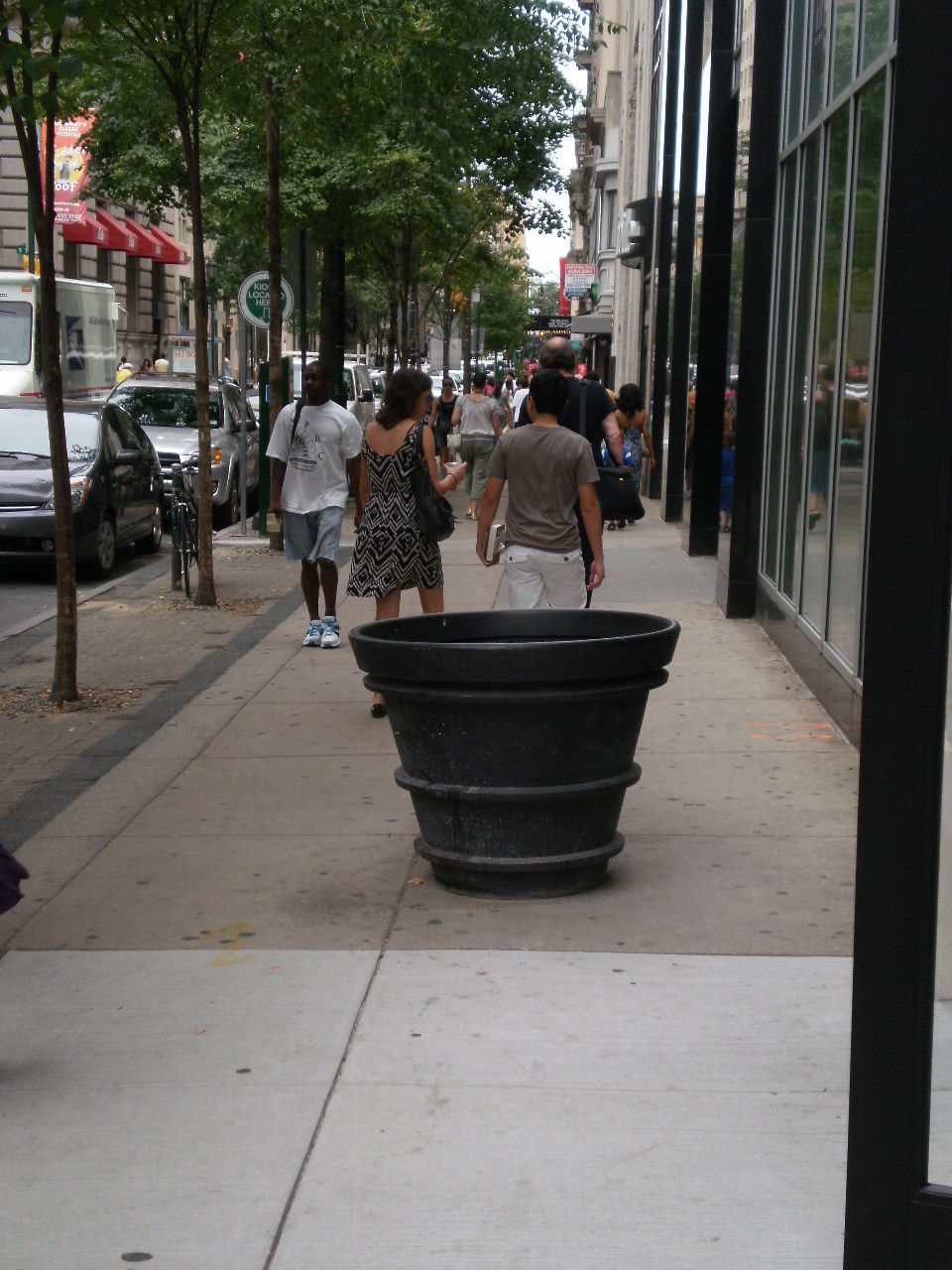 Less cooperative are the automobiles that cities allow us to give up. Sidewalks are increasingly crowded with hot dog and newspaper vendors, as well as restaurants that turn open sidewalks into outdoor cafes. Sidewalks also become the favorite site for renovation and construction projects. In all of these cases, city officials would never countenance taking away a lane of traffic. Instead, they pass the pain along to pedestrians. In our section of downtown Philadelphia, we needed to cross the street twice to avoid construction projects on either approach to our high-rise building.