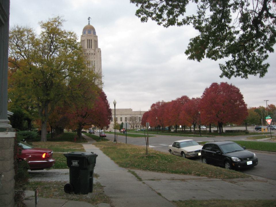 Lincoln, Nebraska — When I first read about FPR’s View from Your Porch series, I immediately decided to submit something. Then I thought about the view from my front porch. Like much of Nebraska, its beauty doesn’t announce itself. You have to wait for it. There’s a public school with a bland brick facade directly across from us, and most of the homes on either side aren’t well maintained by their owners. When I thought of that view and compared it to the sort of idyllic small-town rural vistas I imagined FPR readers enjoying, my own place seemed tawdry, dirty, and oh-so-modern in comparison. As an added bonus, my neighborhood is one of Lincoln’s poorest, and my apartment is within 50 feet of the governor’s mansion and about 200 feet of the state capitol. I don’t know a better metaphor for the state of our body politic.