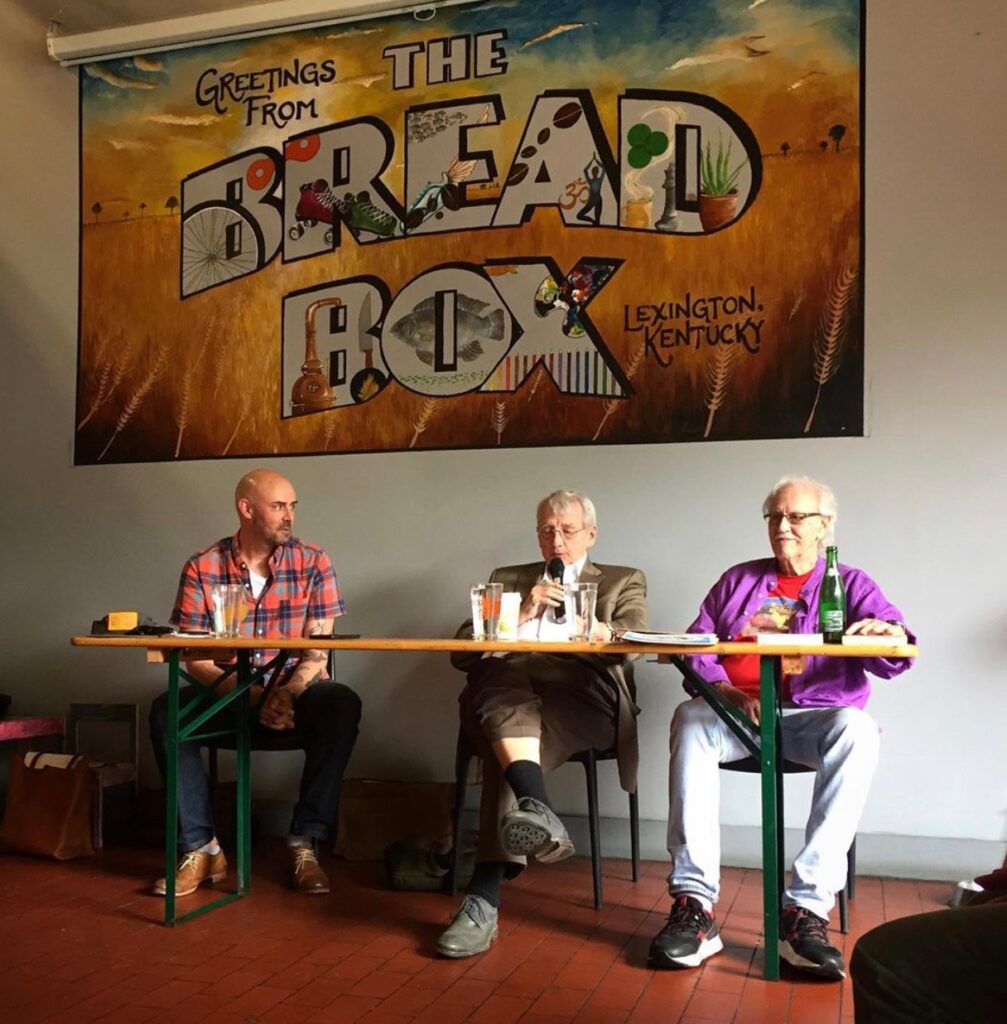 A few years later, when Ed McClanahan, one of Gurney’s longtime friends, invited me into a recurring conversation and friendship throughout much of the last decade of his life, I made certain to learn from Gurney’s example. I set out to listen more deeply and intently. My conversation and friendship with Ed spurred an interest in the counterculture movement in Kentucky as seen in the writings of several of its most prominent writers, a group that included both Ed and Gurney. Hoping to learn more from them, I reached out to Gurney in preparation for my stint as a fellow in the Kentucky Historical Society (KHS) and asked if I could host a conversation with him and Ed. Before being willing to agree to such a public conversation, Gurney requested I call him for a talk. When the morning for our phone call came, I sat in the KHS parking lot for more than an hour listening as Gurney wove a web of connections between localism and regionalism, Kentucky mountains and rivers, Appalachian culture and counterculture. In the end, he enthusiastically encouraged me to continue my pursuits and offered to assist me in any way he could. Furthermore, he agreed to join Ed and I for what promised to be an exciting time of talking and listening. On June 12, 2019, then, the three of us sat in front of a packed room at West Sixth Brewing in Lexington for what we had dubbed the “Gurney & Ed Show.” As I asked a few questions and tried to get out of their way as quickly as possible, the community of writers, artists, scholars, and students gathered made it clear that more than a few other people wanted to listen, as well.